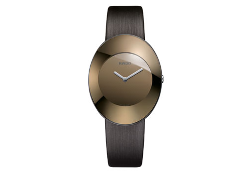 The quartet of the new eSenza Colours limited edition watches: warming gold, soft icy silver, dark brown, and rose brown colors, are displaying so modernist and minimalist look, so clean and pure. There is nothing on the dial, except the steel-colour printed Rado logo and the two hands. The sexiness and the beauty are revealed from the matching of the color of the dial, case, and its satin bracelet. More, the dome-shaped sapphire crystal charmingly strengthens the statement.